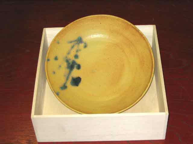 黄瀬戸八寸皿鉢 黄瀬戸の八寸皿鉢を木箱に入れてます ・・・ 参考価格\5,000 (木箱込) 皿鉢寸法 径約 245mm × 高さ約 55mm 八寸の皿鉢は毎日の食卓のメインを彩るメイン皿です。 「使わない時は皿立てに立て、飾り皿として使っている」という声も多数いただいています。 |